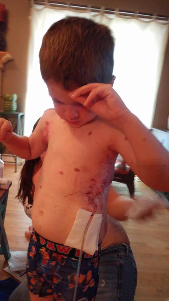 After three months of implants, Dylan has developed more skin. A large mole was removed from the small boy’s back in the expectation that the surrounding skin would cover the scar.