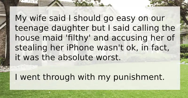 I got up and made it clear to my daughter that I would punish her if she ever said anything like that to our housekeeper again.