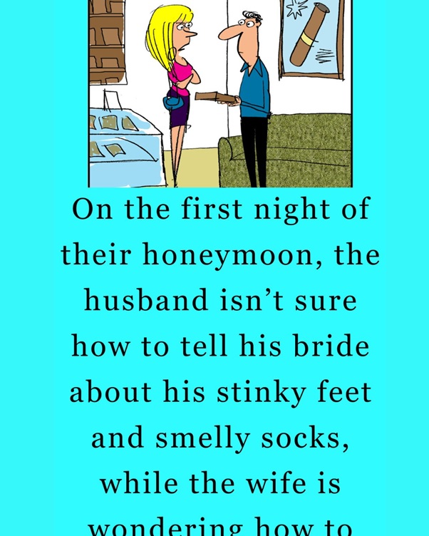 On the main evening of their wedding trip, the spouse doesn’t know how to inform his lady concerning his stinky feet and rancid socks,