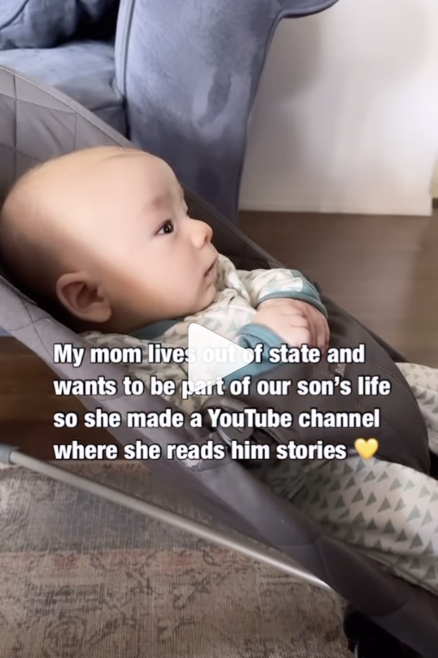 “My mother lives out of state and needs to be important for our child’s life,” peruses the subtitle. “So she made a YouTube channel where she peruses him stories.”