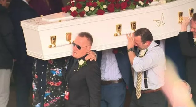 She continued, “And seeing you here lying in this box just doesn’t make any sense,” before saying goodbye one last time with their favorite song, “You Are My Sunshine.”