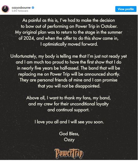Deal with yourself,” and “Sir, there is compelling reason need to apologize; you have offered long stretches of amusement. Deal with yourself and recall that your wellbeing starts things out, Ozz. Another fan answered, “Don’t apologize, Ozzy; simply recover. “Take as the need might arise.”