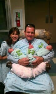 Premature babies Joel, Hannah, and Elizabeth spent some time in the NICU before being sent home with the Justice family.