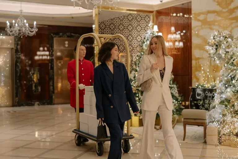 The chandeliers in the Grand Lumière lobby shone brightly despite the rain beating against the windows. The weather could never drown out the luxurious mood.