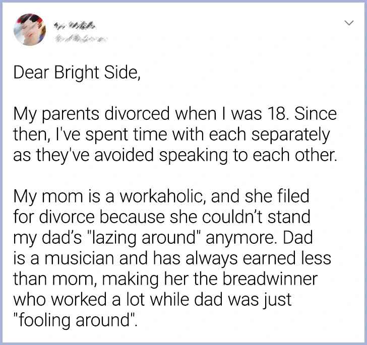 But when our reader’s mother couldn’t get rid of her long-standing grudge against her ex-husband, things took an unexpected turn.