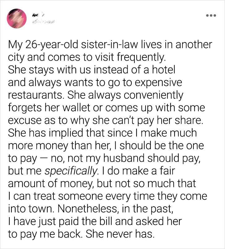 This story offers insight into the complexity that financial matters can bring to family dynamics. The decision to address the lingering problem of a sister-in-law’s reluctance to share expenses in a somewhat unconventional way underscores the frustration that can arise in such situations. While the narrator admits to the possibility that he has taken things a little too far, the underlying hope is that this incident will make the sister-in-law reflect on her behavior and perhaps instigate positive change. The story resonates with the larger theme of how financial strain can affect family relationships, a theme we’ve explored before. It serves as a reminder that open communication about financial expectations is essential to maintaining healthy family ties, preventing unnecessary conflict, and promoting mutual understanding.