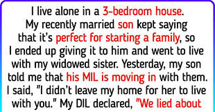 I live alone in a three-room house. My son, who recently got married, kept saying this would be the perfect home for him and his wife to start a family. I finally agreed to give him to them and he moved in with his widowed sister.