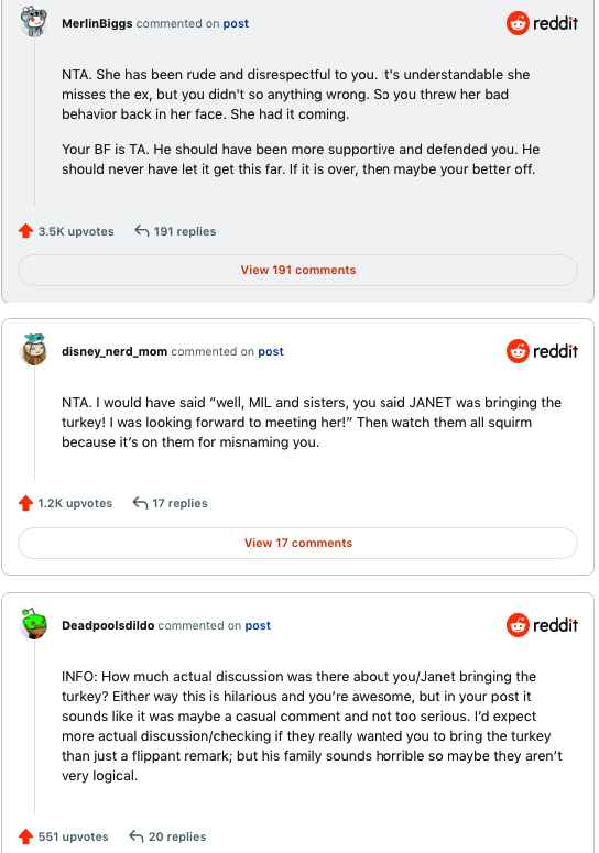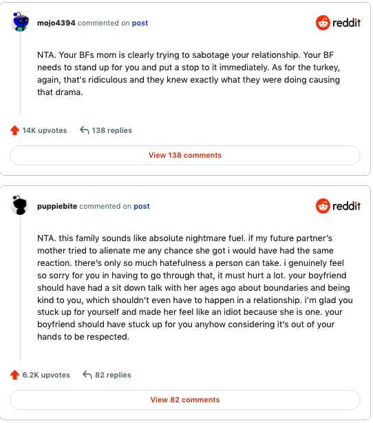 The woman couldn’t figure out why her boyfriend was so upset with her and why their family Thanksgiving had gone so wrong. To find out if she was to blame, she took to Reddit.
