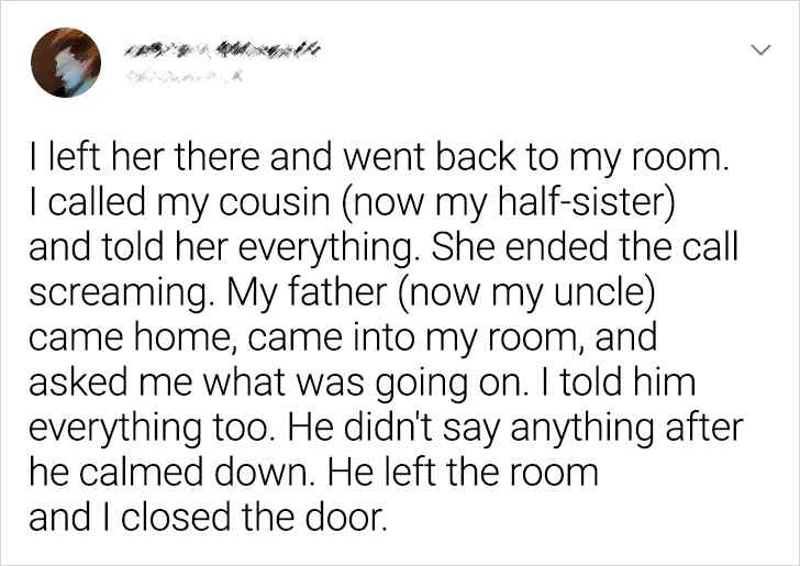 I immediately asked her if she had cheated on my father when she saw my uncle. I’ve never seen the color drain from someone’s face so quickly.