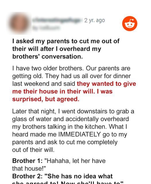 Feeling seriously steamed and deceived, I took a hard choice. The following morning, I addressed my folks and beseeched them to thoroughly eliminate me from the will. I didn’t need the house or any of the legacy. I needed to really focus on them since I cherished them, not out of commitment.