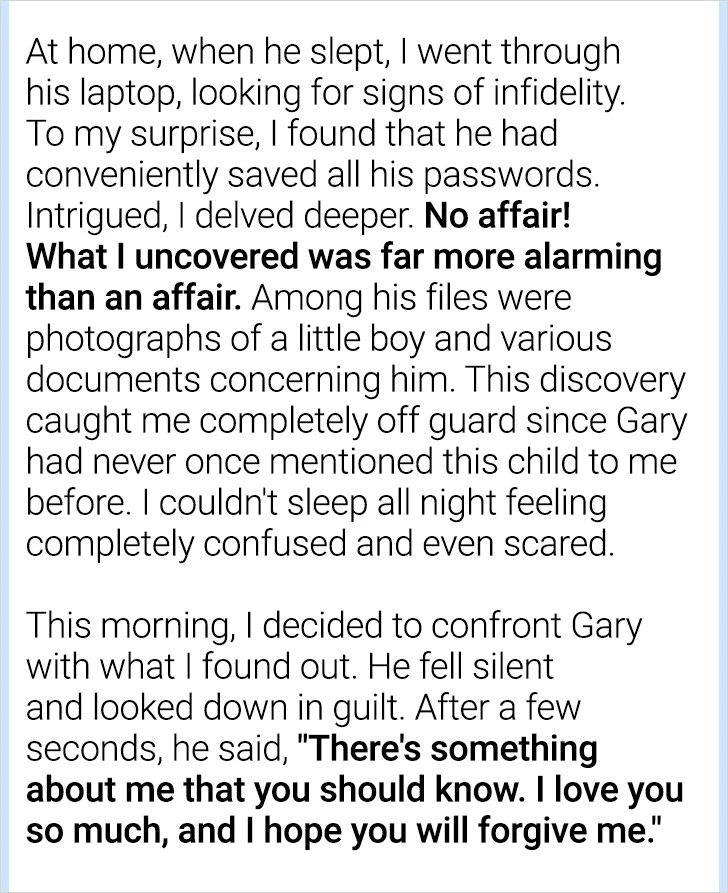 Keeping such important secrets between lovers could cause irreparable damage to their relationship. In another situation, a wife was devastated when she learned something surprising about her husband that rocked her world.