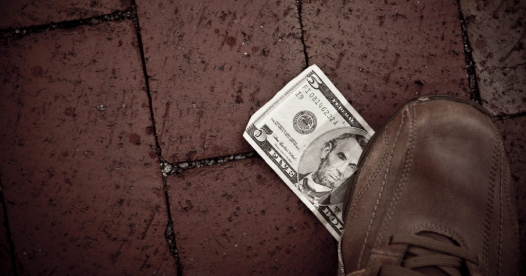 One scammer gains a victim’s trust by dropping $10 in cash near their feet and pointing at them. They then watch at close range as the victim enters their PIN number on the keypad. The first fraudster follows the victim into the parking lot and quickly swipes the victim’s card associated with the recorded PIN number, while the cooperating suspect approaches the victim and claims that the money found is theirs.