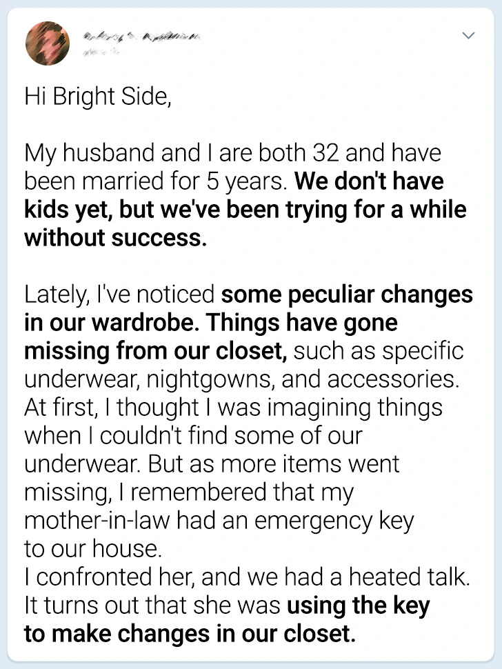 Many people look forward to becoming grandparents because they want to be able to share their warmth with young children. However, some people may exceed this goal. Bright Side reader Sally contacted us to tell us how her mother-in-law invaded her privacy because she thought it would help her daughter-in-law get pregnant.