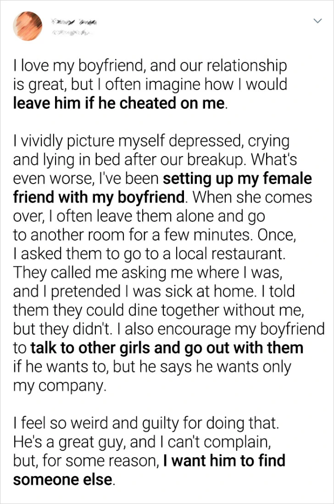 I’m Intentionally Setting Up My Boyfriend with My Friend, Hoping He’ll Cheat on Me