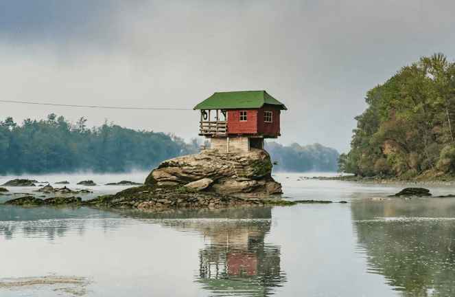 A group of local residents who regularly moved from one bank of the Drina to the other built this incredible wooden house in 1968.