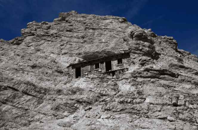 Italian Baffa di Perrero. The house is located directly on the high rock