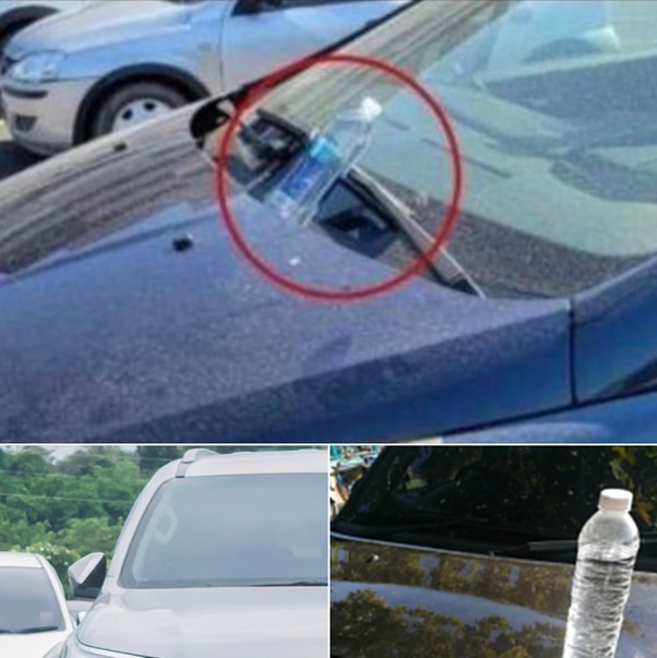 At the point when she got to her vehicle, she saw a water bottle sitting on top of the hood.