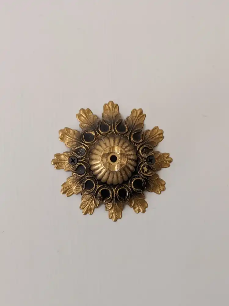 “This is either a toothbrush holder or a soap dish holder, but the central part that held the ring is missing. Does that make any sense given its placement on the toilet? It could have been used as a towel holder. ok. These were common in houses in the 60’s and 70’s if I recall.