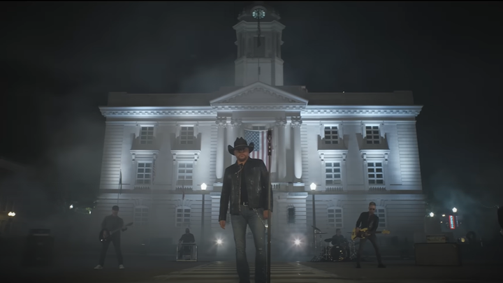 Country music star Jason Aldean can be seen in the official music video for “Try That In A Small Town”. The video was filmed in front of Columbia, Tennessee’s Maury County Courthouse, which has a controversial history. (Aldean Jason)