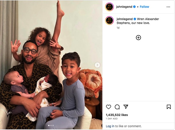 Two or three has two more seasoned kids, Luna and Miles. They likewise invited their third little girl Esti a half year prior. John Legend likewise shared a post of him and his family with the most up to date part. He wrote in the subtitle, “Wren Alexander Stephens, our new love.”