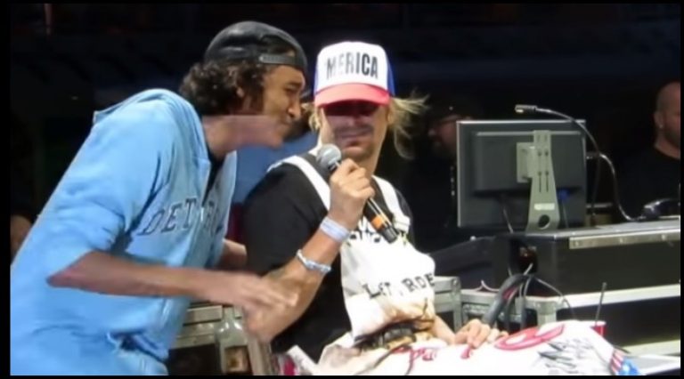 Rolling Stone quoted some of the lyrics before saying, “In the song, [Kid Rock] taps into the right-wing agenda by dropping F-bombs about social media platforms, criticizing President Joe Biden and repeating the phrase ‘Let’s go Brandon.’ 13 times.” He raps, “But COVID’s close, it’s coming to town/We gotta move fast, close our borders,” Before he gets sucked into his MAGA dad: “Joe Biden yeah, the media’s embracing it/Big Don’s doing it and calling him a racist .”
