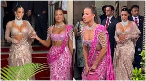 At Anant Ambani and Radhika Merchant’s lavish wedding in Mumbai, Kim and Khloe Kardashian really shined in their traditional attire, showcasing the elegance and beauty of the lehenga. Their outfits not only paid homage to the cultural significance of the garments but also emphasized their own sense of style, mixing modern fashion with classic elements.