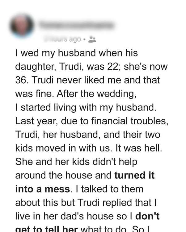 A concerned spouse as of late took to Reddit to make sense of her family trouble and look for direction on a circumstance that has been causing erosion among her and her stepdaughter, Trudi.