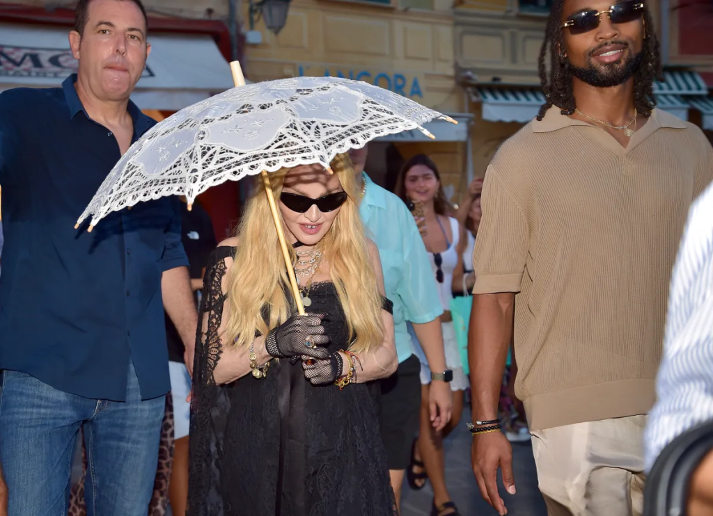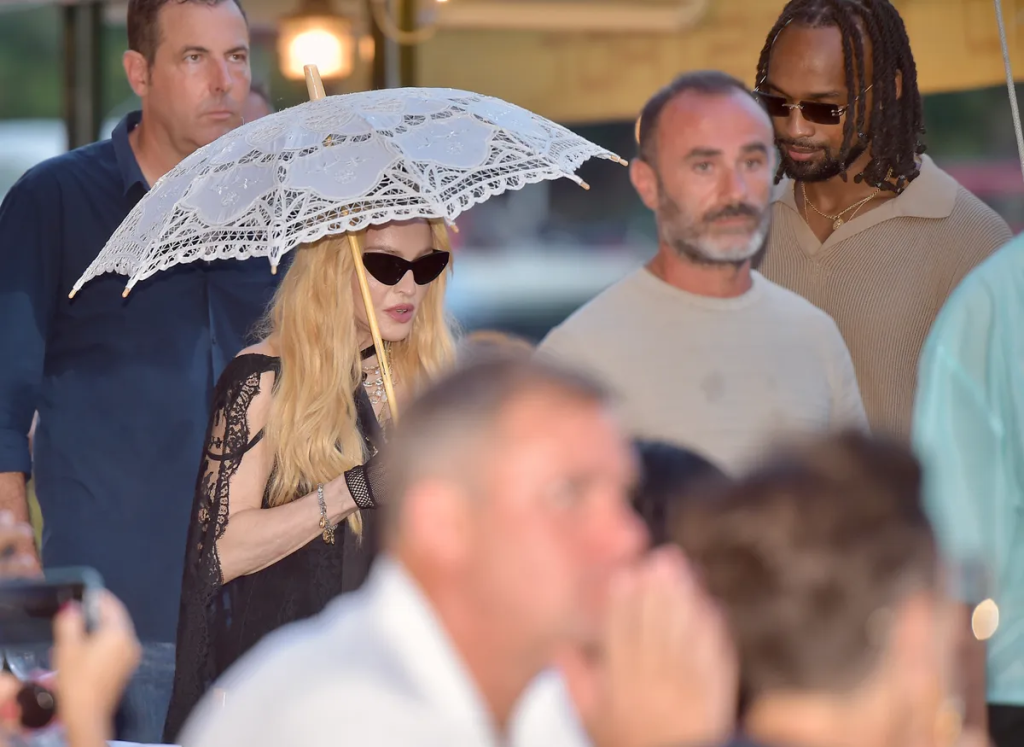 Madonna held Akeem’s arm tightly as they walked, making their close connection clear. At one point she was seen using a white umbrella to protect herself from the sun.