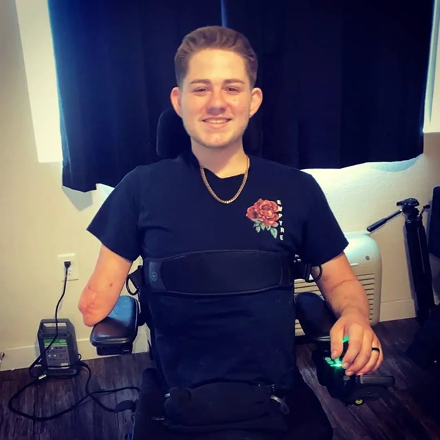 Loren Schauers, from Montana, U.S.A., was 19 years of age when he dove off the side of a scaffold driving a forklift truck in 2019.