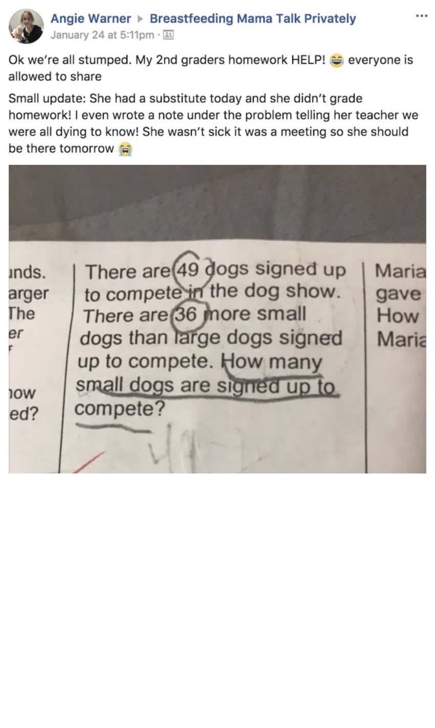 In a computerized age where problems find comfort in web-based networks, Angie Warner looked for help for her confused second-grader. With a numerical question that confused both mother and youngster, she went to the Breastfeeding Mom Talk Secretly Facebook page, starting an aggregate bewilderment among its individuals.