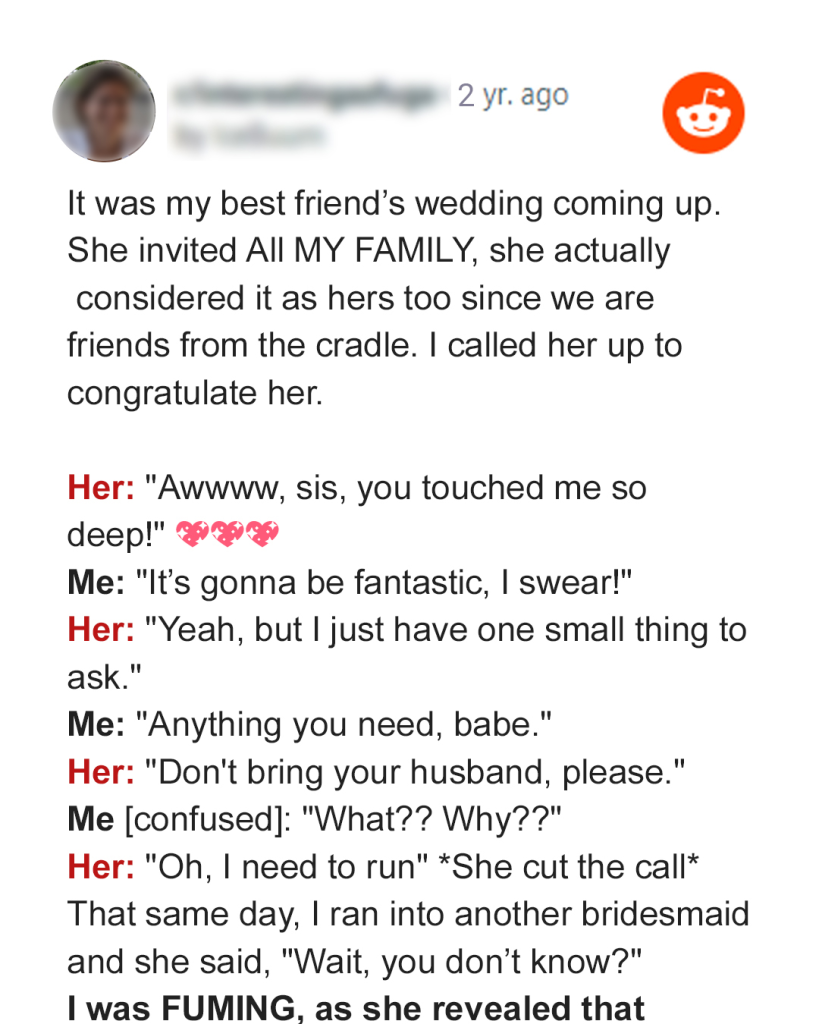 Nothing in it made sense to me. Why wouldn’t my husband get an invitation to the wedding?