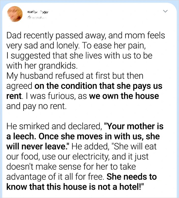 Given the profound intricacy of the circumstance, consider looking for help from a family specialist or instructor who can work with conversations between you, your significant other, and your mom. An impartial outsider can give important understanding and direction, assisting all gatherings with communicating their interests and complaints helpfully.