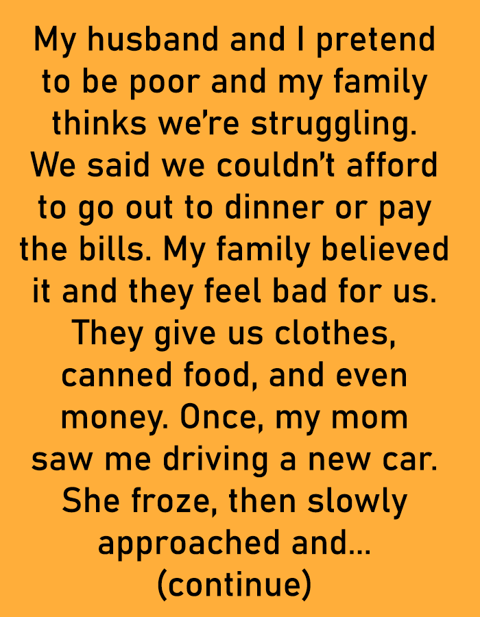 At first, it was only a few small things here and there, but over time it turned into a full act. We started to say that we could not afford dinner or even keep up with our accounts. My family bought it, we were sorry for us and gave us clothes, canned food, and even money.