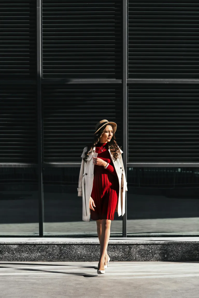 Imagine this: Tom came home that evening to find me completely changed! I had my hair styled and makeup applied by a professional and wore an elegant red dress.