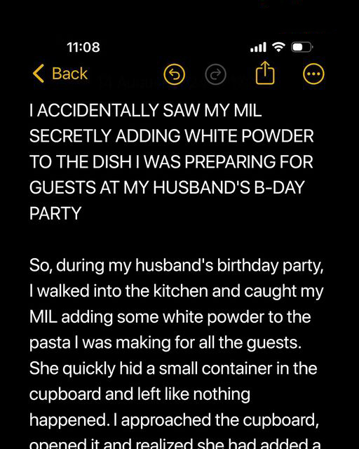 Eva said, her voice full of innocence and triumph. “Grandma put citric acid into pasta, Mom.” She said she wanted to teach you a lesson. ”