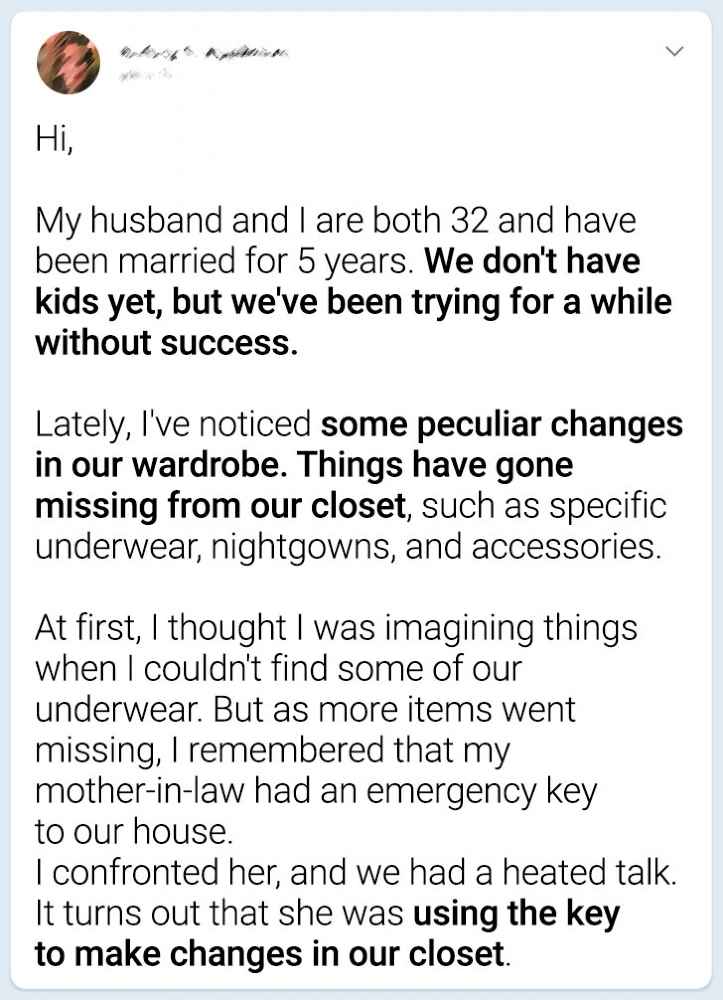 Wouldn’t it be better if MIL just discussed what she thinks will be helpful with her son and DIL? Don’t go so far as to remove their clothes and replace them with something of her choosing. In my opinion, it would make me very angry. Many MILs seem to ignore personal space! © Facebook / Jeanne Leggett Sterling