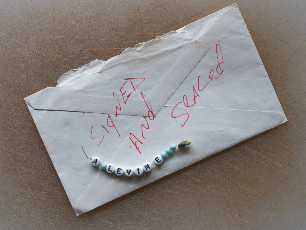But among the normal mess of mail and Emily’s school books she had brought with her, I saw THIS HORRIBLE ENVELOPE on the kitchen table. Levine wrote my name in his recognizable calligraphy.