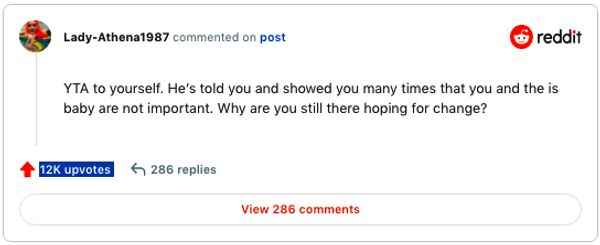 She received an incredible response from the Reddit community. They reassured her that her desires and feelings were reasonable. Her need for more attention from her husband during her pregnancy was not irrational or insane.
