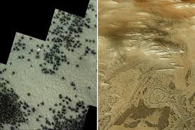 The European Space Agency (ESA) said in a statement that “rather than being true spiders, these small, dark features form when spring sunlight hits layers of carbon dioxide deposited during the dark winter months.” “The carbon dioxide ice at the bottom of the layer is turned into a gas by the sun, and that gas builds up and eventually breaks through the ice sheets above.