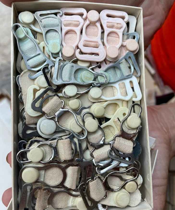 18. “Metal, plastic, and canvas-looking fabric clips – they’re several inches long and some say FLATEX.”