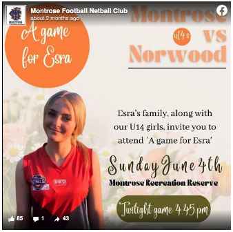 Esra, a young athlete who was co-captain of the Montrose Football Netball Club and raced BMX bikes with her siblings, was praised by her peers for being “determined, fun, sassy, and talented”. In Queensland, Esra also led her team to a national aerobics title.