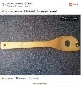 One person was confused by a wooden spoon with a hole in the middle when it came to cooking equipment. Reddit quickly revealed that the design was meant specifically for risotto and allowed the liquid to pass through while stirring.
