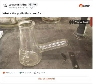 Someone obtained a phallic laboratory flask, full of dimensions and a characteristic long piece that looked like a handle. Its goal – to examine mixtures without taking a sample – was clarified by Reddit. A user who owned several of these flasks and ran a molecular microbiology lab provided confirmation.