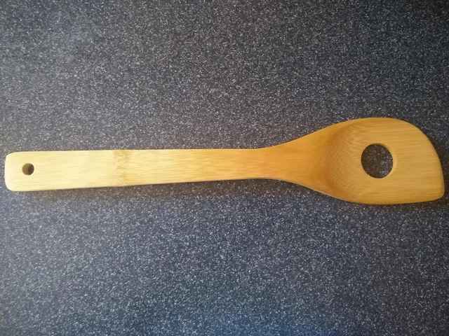 Wooden spoons are used in cooking. However, one individual was confused when he discovered a spoon with a circular hole in the middle. They were determined to find a use for the photo they captured.