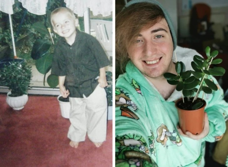 7. “Two images from 1999 of me with the exact same plant.”