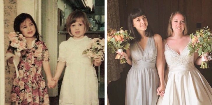 13. “The bride & the maid of honor, both back then and now”
