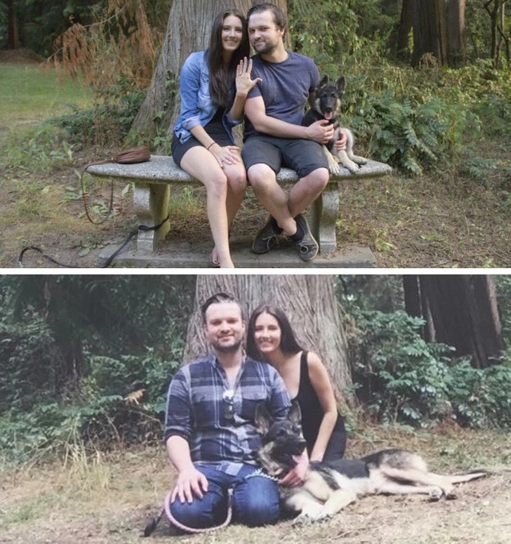 14. “I’m the one who put a ring on a puppy’s collar and proposed a couple of years ago. Here we are yesterday, on our anniversary, in response to several of your requests for an updated photo.
