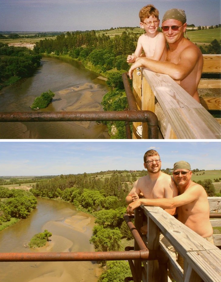 4. “My dad and I got the opportunity to embark on a vacation we had previously taken 15 years earlier. opted to reproduce this image in honor of.”