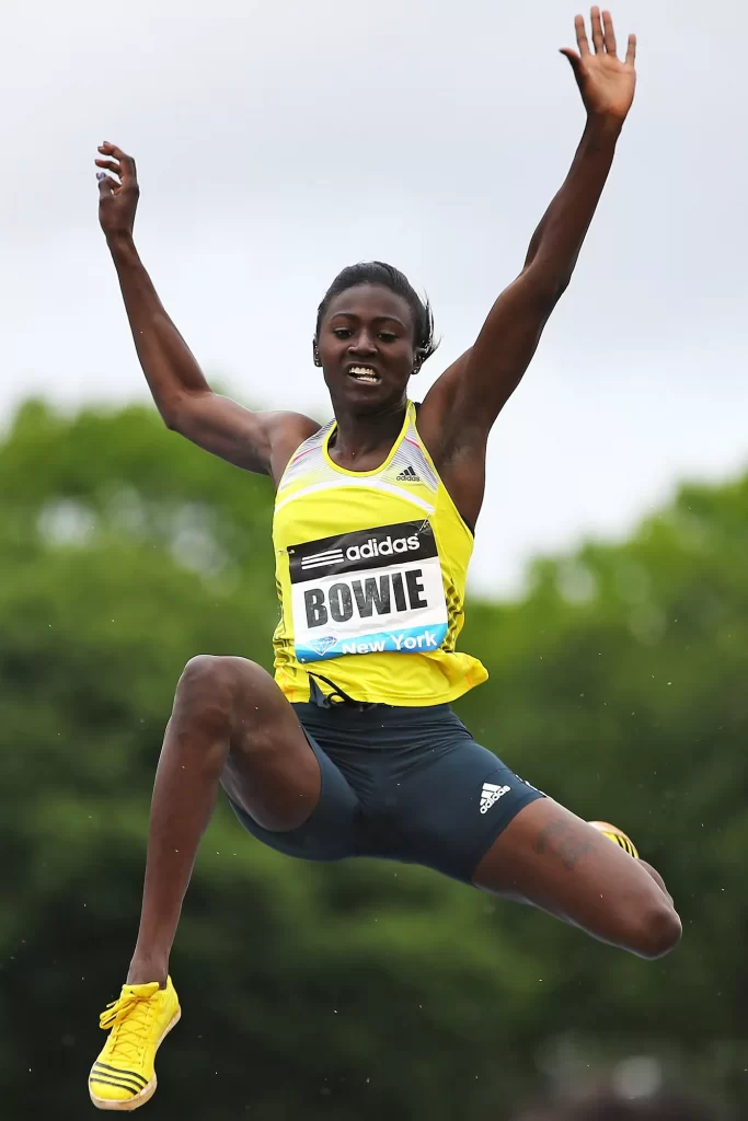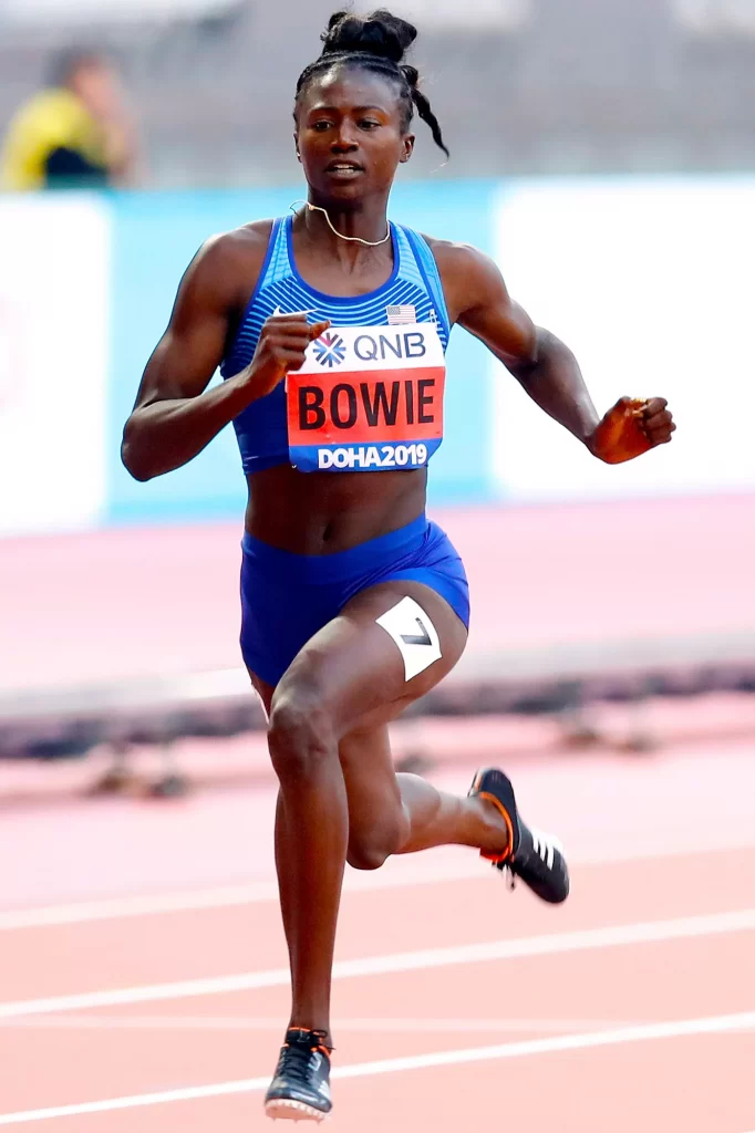 The following year at the IAAF World Championships, Bowie won gold for the United States in the 100 meters and the 100 meters relay.