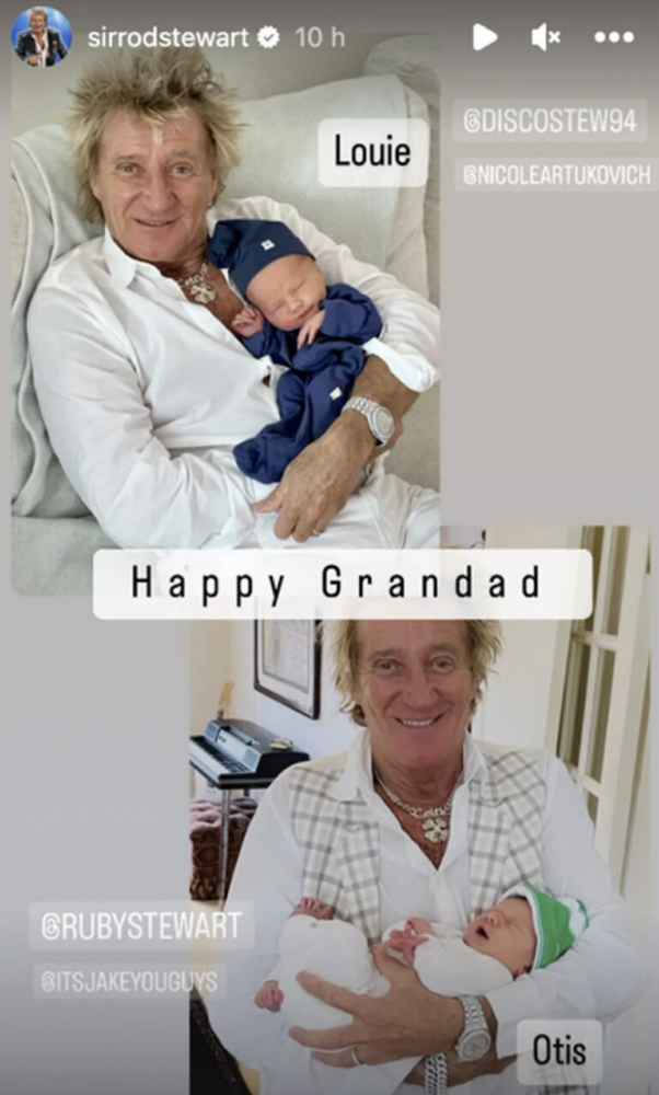 Rod Stewart, a very happy grandfather, posted photos of himself holding the babies on social media.